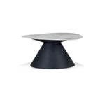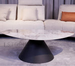 This uniquely designed coffee table set features an irregular oval top crafted from high-grade artificial marble, paired with a strong and stable MDF base. Suitable for modern home styling, these tables enhance and beautify any living space with their distinctive aesthetic.