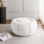 Charming and cozy, this pumpkin-shaped chair and ottoman set brings a unique, eye-catching touch to any space. Upholstered in pure white lamb velvet, it offers luxurious softness and a plush feel, inviting you to relax in style.