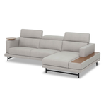 This modern L-shaped sofa is designed to bring both style and comfort to your living space. Upholstered in a soft light grey fabric and supported by a durable wooden frame, it offers a clean, minimalist look that complements a wide range of interiors. The seat cushions are filled with sponge padding for everyday comfort, while the black legs provide a sleek contrast and stable support. Ideal for lounging, entertaining, or simply relaxing at home.