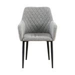 Elevate your space with this pair of 33.9-inch gray linen chairs, featuring a contemporary grid-pattern design on both seat and backrest. The matte black iron legs provide sturdy support while adding sleek, modern appeal.