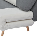 This modern-style sofa bed features a clean white and grey color combination that adds brightness and versatility to any room. Upholstered in 100% polyester fabric, it offers a smooth, durable surface that’s easy to maintain. The seat is filled with bonded foam, providing firm yet comfortable support. Built on a sturdy pine wood frame, this sofa bed also includes pine wood legs finished in a natural wood color with a clear varnish, adding a warm, organic touch.