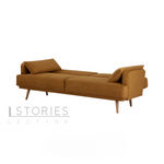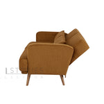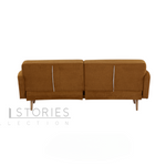 The Liore Sofa Bed blends modern style with everyday comfort. Upholstered in soft 100% polyester fabric in a vibrant pumpkin color, it features bonded foam filling for supportive seating and sleeping. Built on a sturdy pine wood frame, it stands on birch legs finished in light coffee with a smooth spray-painted finish. Stylish and practical, the Liore easily transforms from a sofa to a bed—perfect for flexible, modern living spaces.