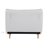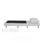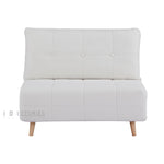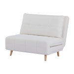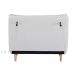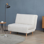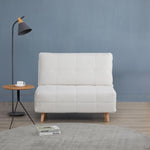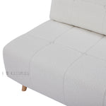 This modern-style sofa bed is upholstered in soft, white boucle fabric made from 100% polyester, offering a cozy texture and clean, contemporary look. The seat is filled with high-density bonded foam for supportive comfort whether sitting or sleeping. Built with a sturdy pine wood frame and matching pine wood legs in a natural wood finish, it combines durability with a warm, natural aesthetic—perfect for elevating any living space with both function and style.
