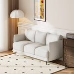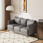 This modern-style sofa is available in two elegant color options: beige and dark grey. Upholstered in breathable linen fabric, it offers a soft, comfortable seating experience that is also washable, UV-resistant, anti-corrosive, and antibacterial — ideal for daily use. The frame is crafted from sturdy wood, and the metal legs feature a sleek gunmetal electroplated finish for a touch of modern sophistication. Designed with fixed backrests and detailed with trend-forward piping, this sofa is a space-saving solution that fits perfectly in bedrooms, small living rooms, or compact apartments. The full KD (knock-down) structure ensures easy assembly.